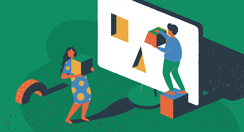 A unified illustration language built from simple geometric forms and organic shapes